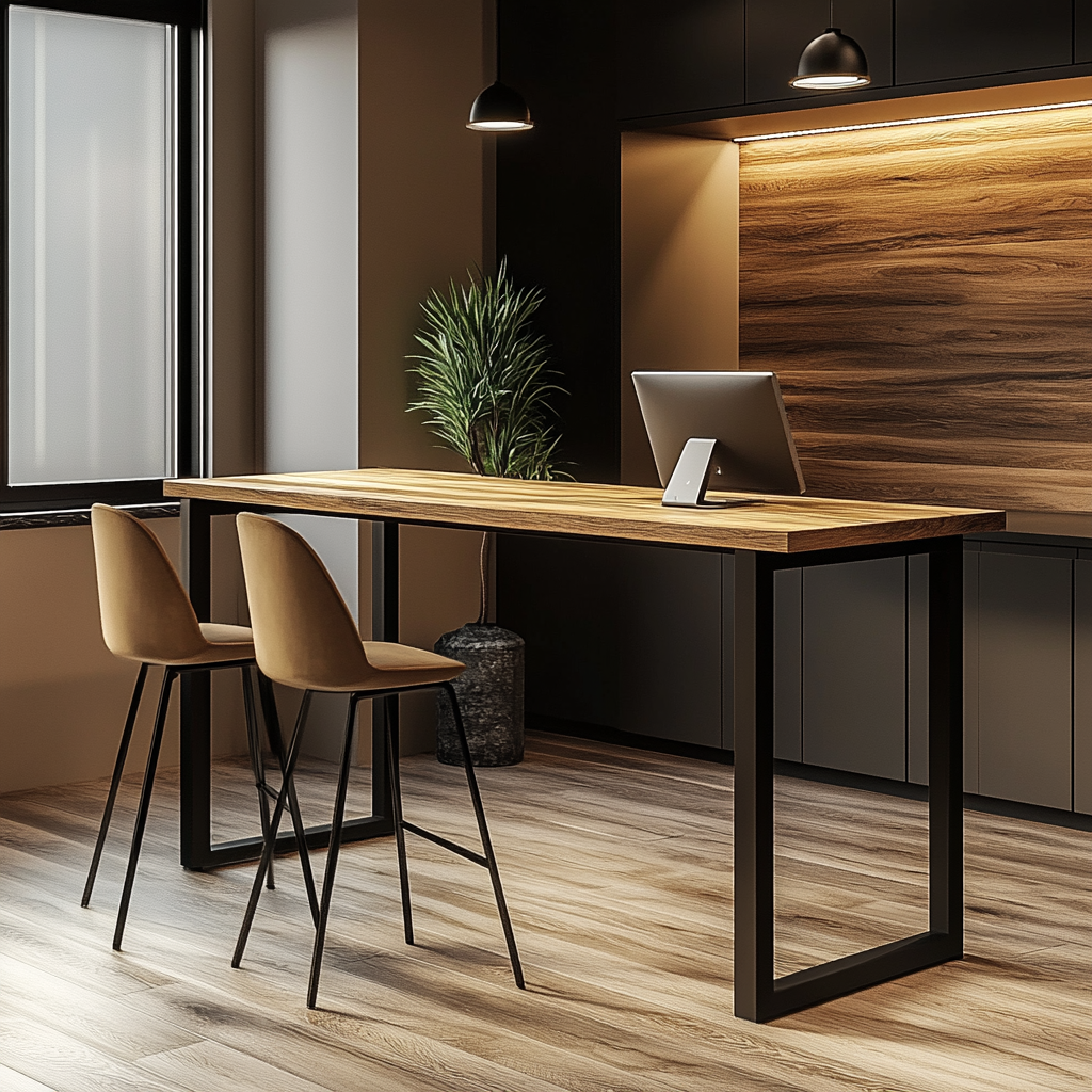 Elevate your workspace with the Rustic Standing Workstation—a harmonious blend of rugged charm and modern functionality. Designed for today’s dynamic professional, this high meeting table transforms your office into a vibrant hub of interaction and well-being.