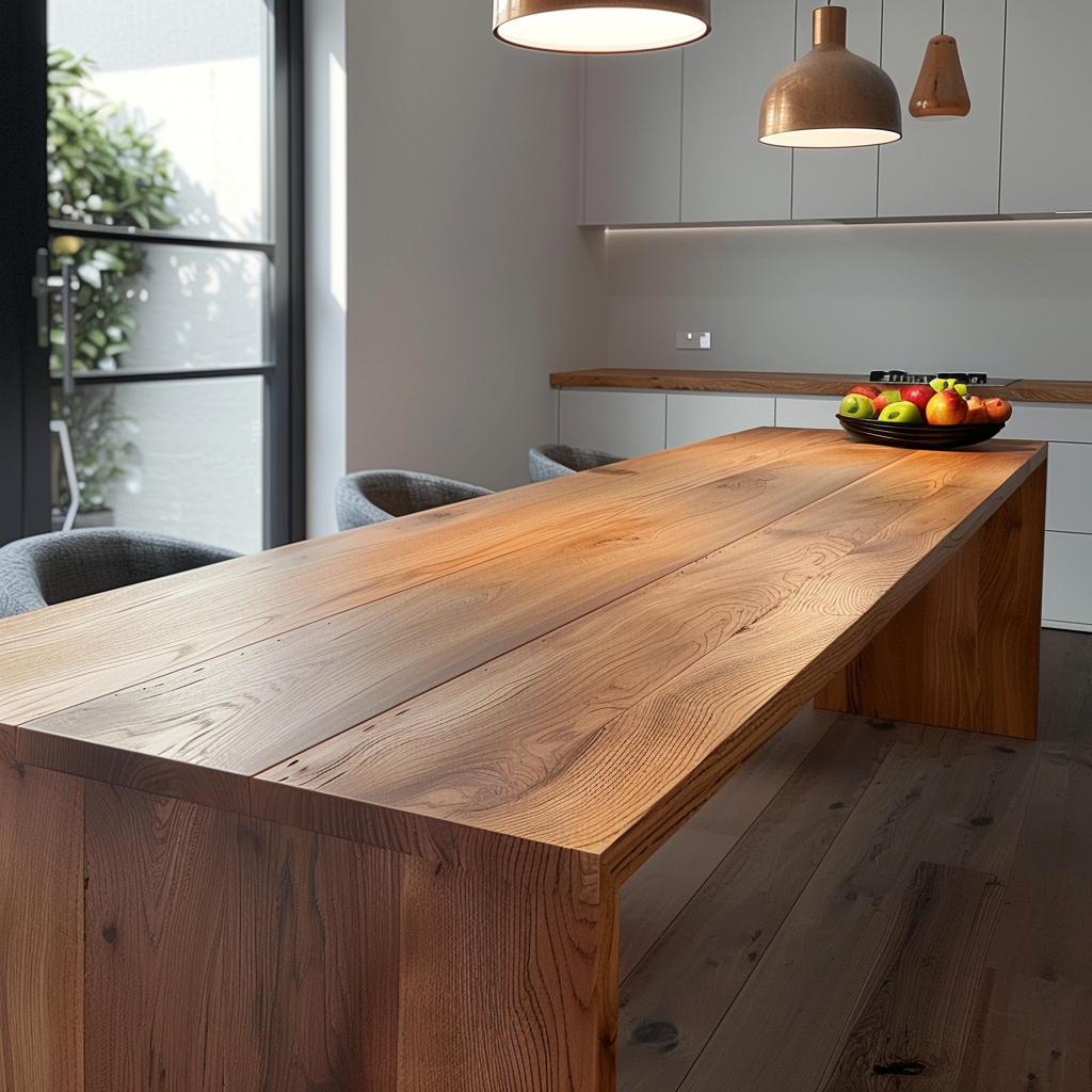 Crafted with precision, each table showcases the natural beauty of premium oak wood. Our artisans expertly sand and finish each piece to highlight the distinctive wood grain, creating a surface that is both visually stunning and tactilely inviting. The result is a table that marries traditional craftsmanship with contemporary elegance, making it a standout feature in any dining space.