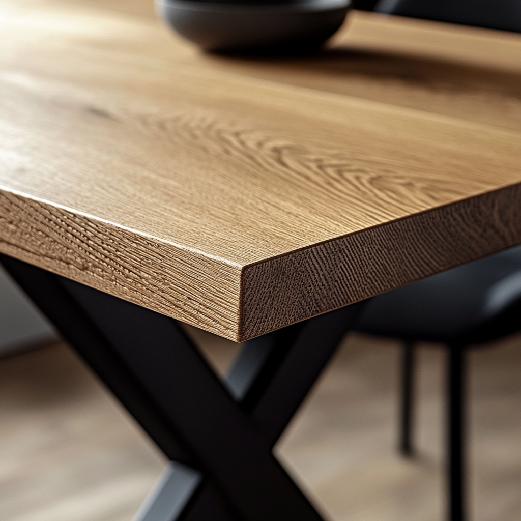 Our raw steel frame/leg variants possess a natural steel sheen in a muted gunmetal grey tone, accentuated with ground silver highlights at the base and joining areas for a robust, factory-inspired appearance. If you wish to enhance your piece with a painted frame finish, please select a colour option.