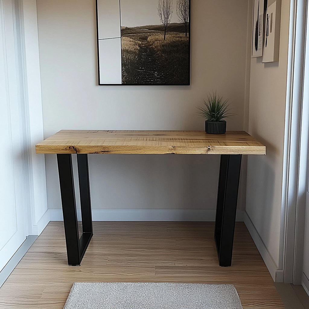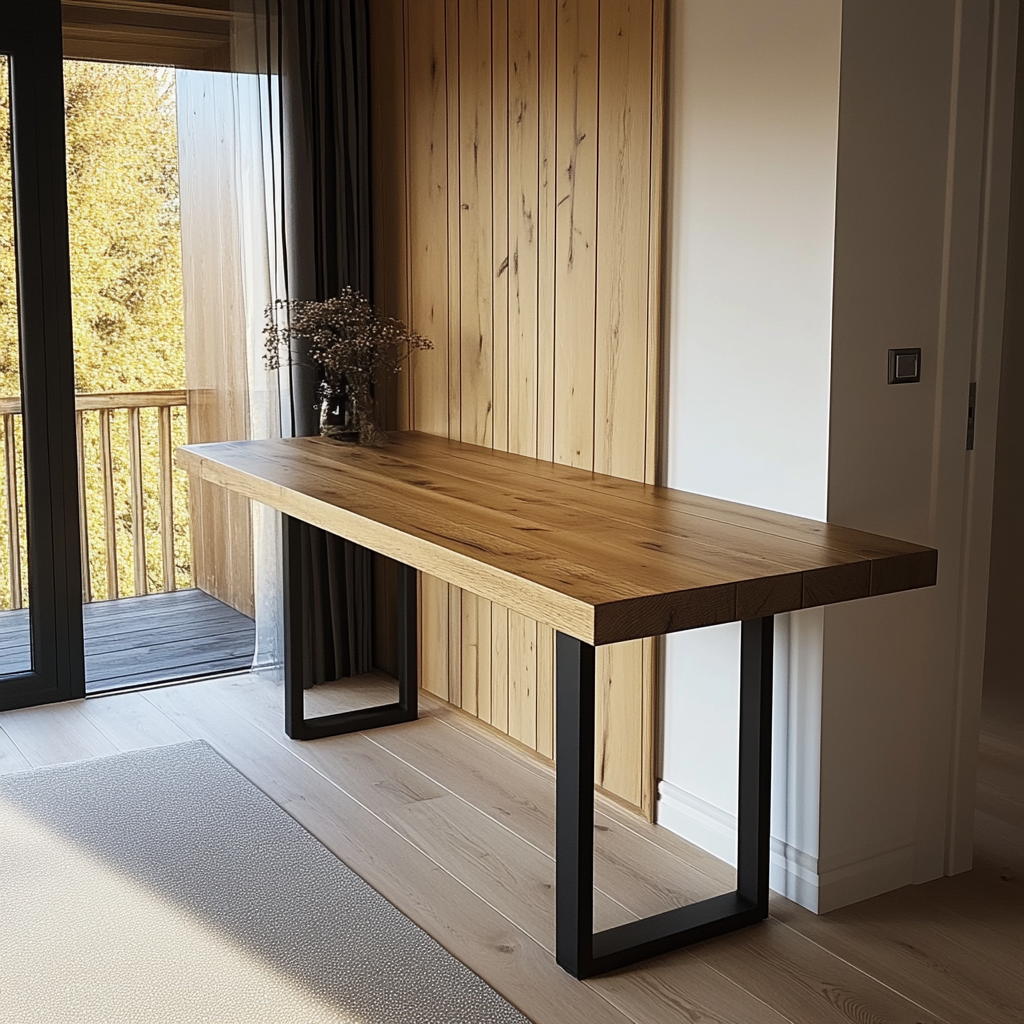Meticulously crafted from premium solid oak, this console showcases the natural beauty of the wood, featuring rich grain patterns and warm, inviting tones. Paired with sleek, industrial-grade steel legs, it offers a striking contrast that highlights the console’s refined craftsmanship and robust construction.